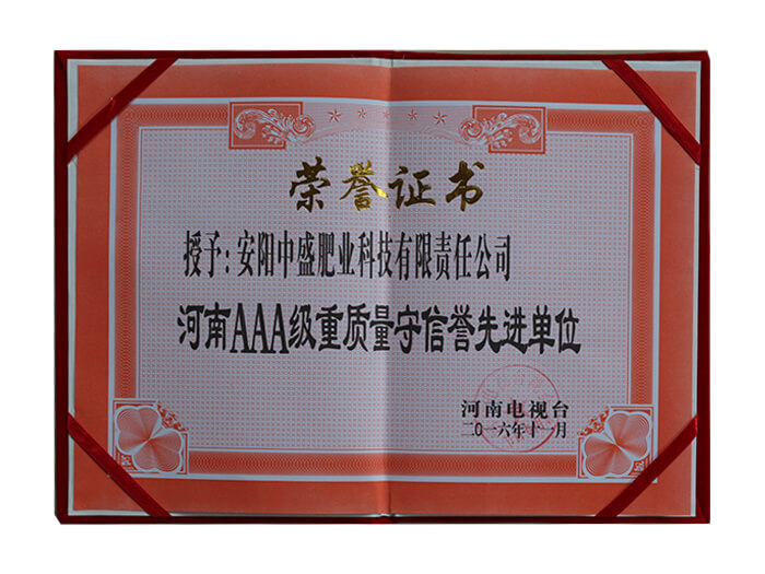 - 河(he)南AAA級(ji)重質(zhi)量守信(xin)譽先進(jin)單