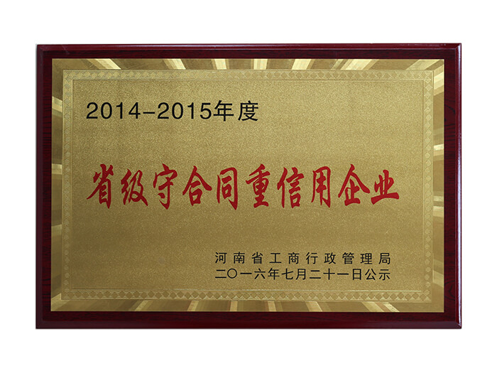 - 省級守合同重信用(yong)企(qi)業(ye)