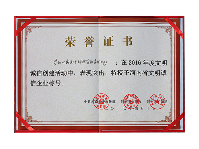 - 2016河南省(sheng)文明誠(cheng)信企業(ye)
